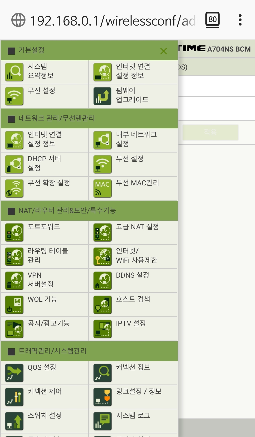 IPTime 공유기 모바일웹 관리자화면 본문