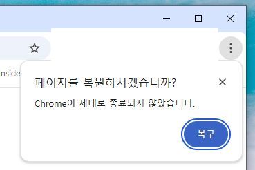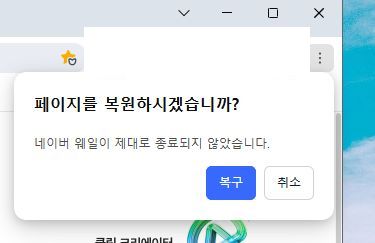 네이버 웨일과 구글 크롬, 페이지 복구 팝업 레이어. 단 한 번만 뜬다.