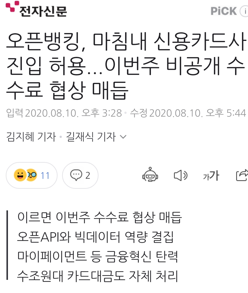 오픈뱅킹, 마침내 신용카드사 진입 허용...이번주 비공개 수수료 협상 매듭