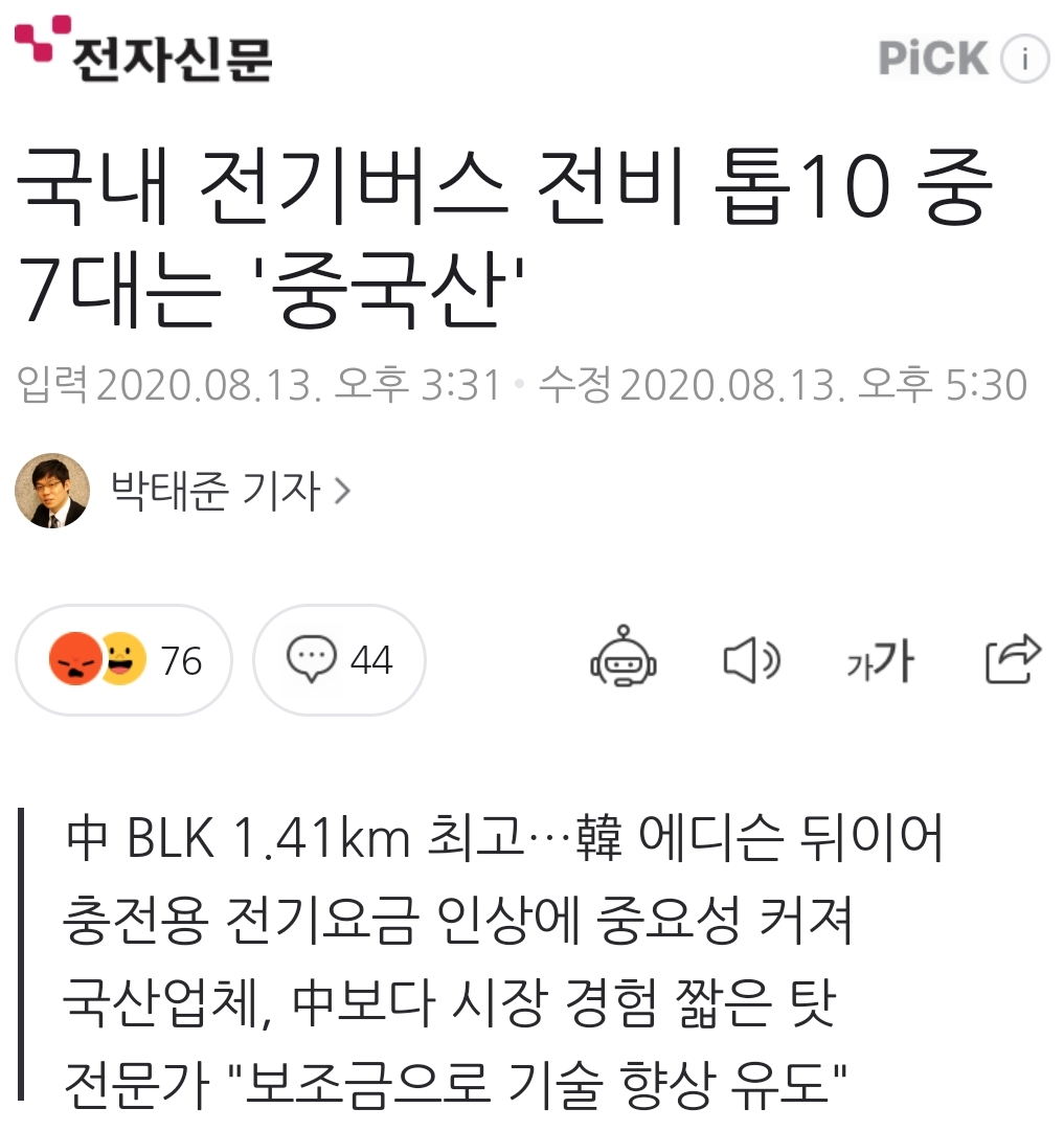국내 전기버스 전기효율 상위는 중국산이란 뉴스 본문