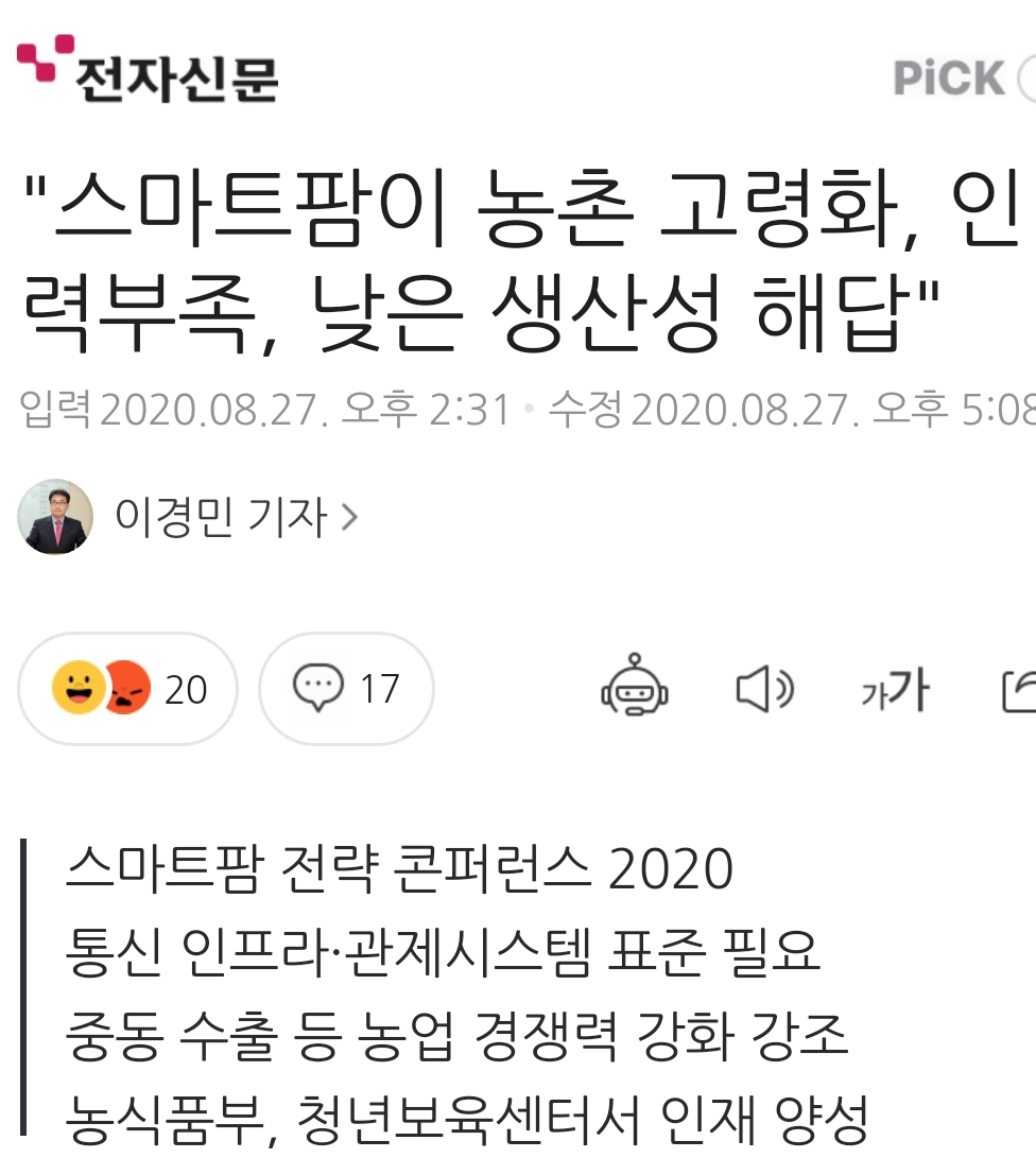 전자신문 스마트팜 전략 콘퍼런스 2020 기사 본문
