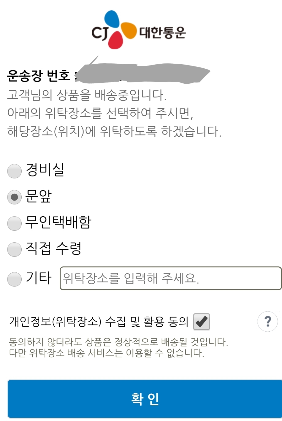 ㅡ. 택배기사 폰에 깔린 택배앱으로 문자를 보내고, 수령방법을 택배기사 전화기 문자로 회신받기