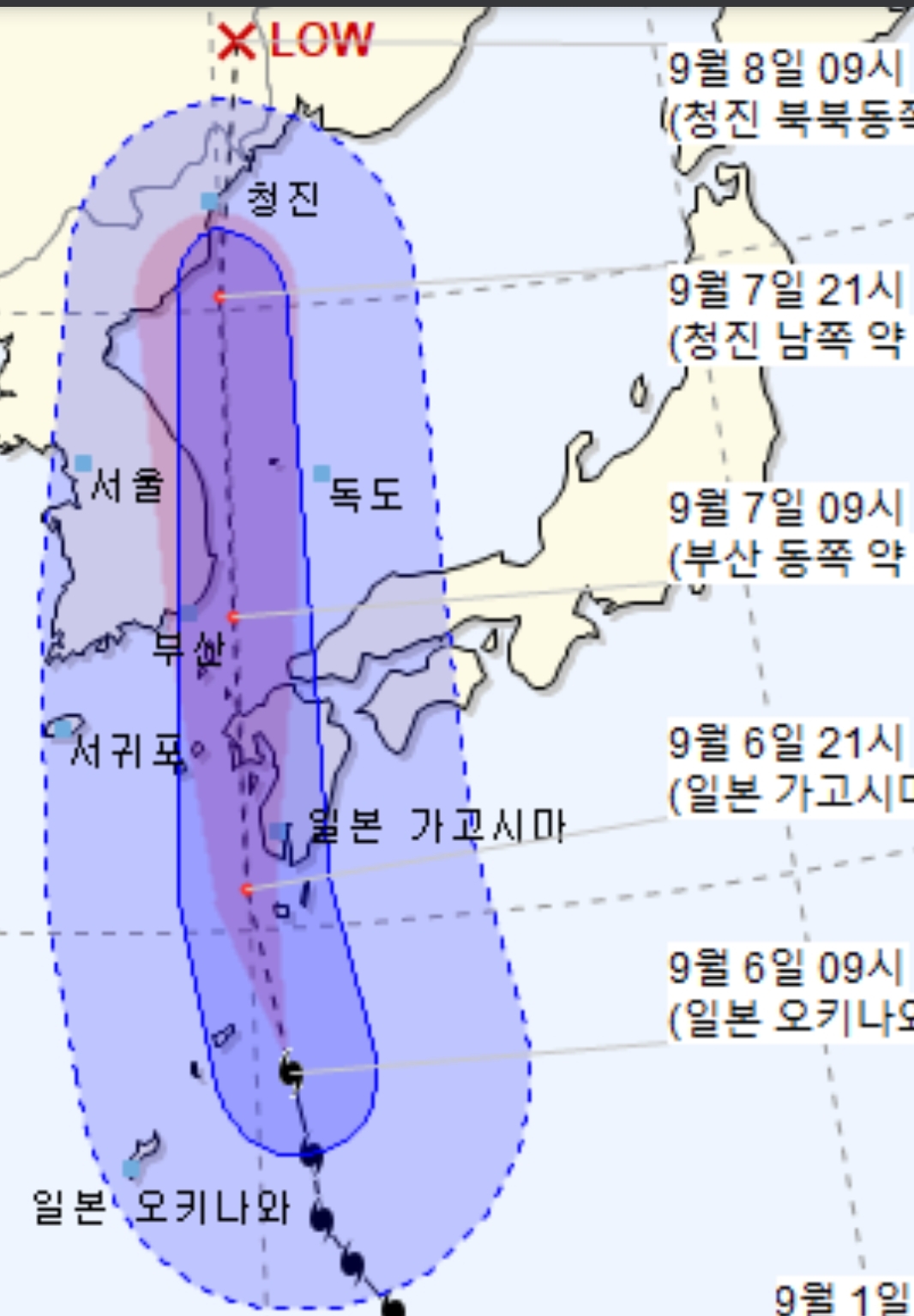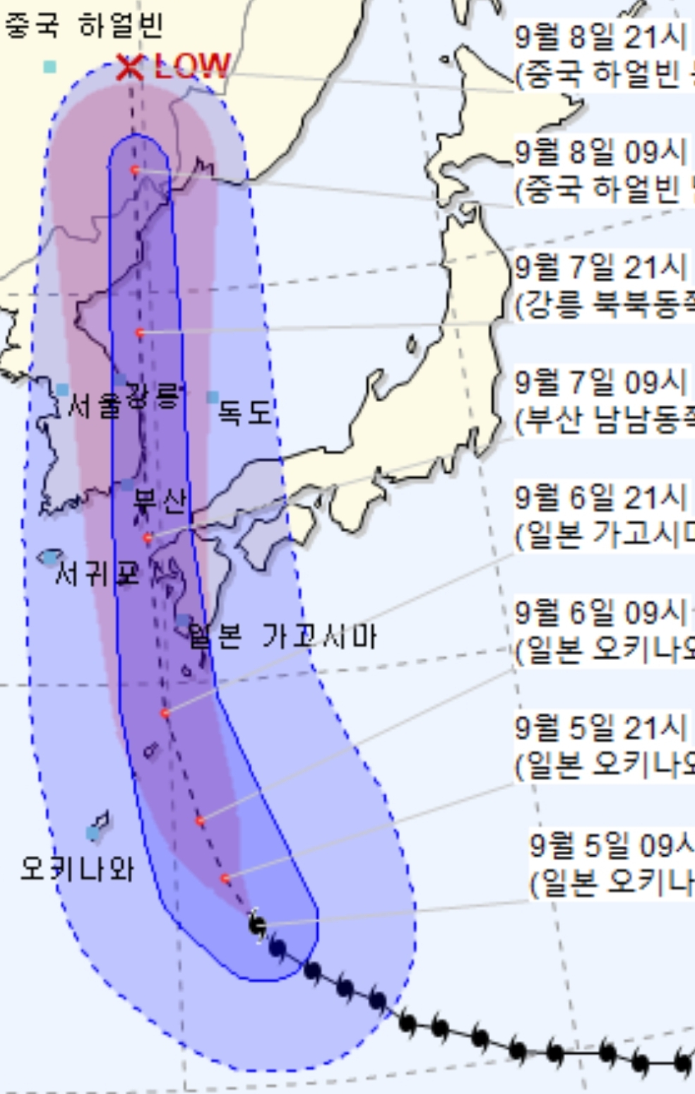 링크는 앞서 한 기상청 태풍정보.