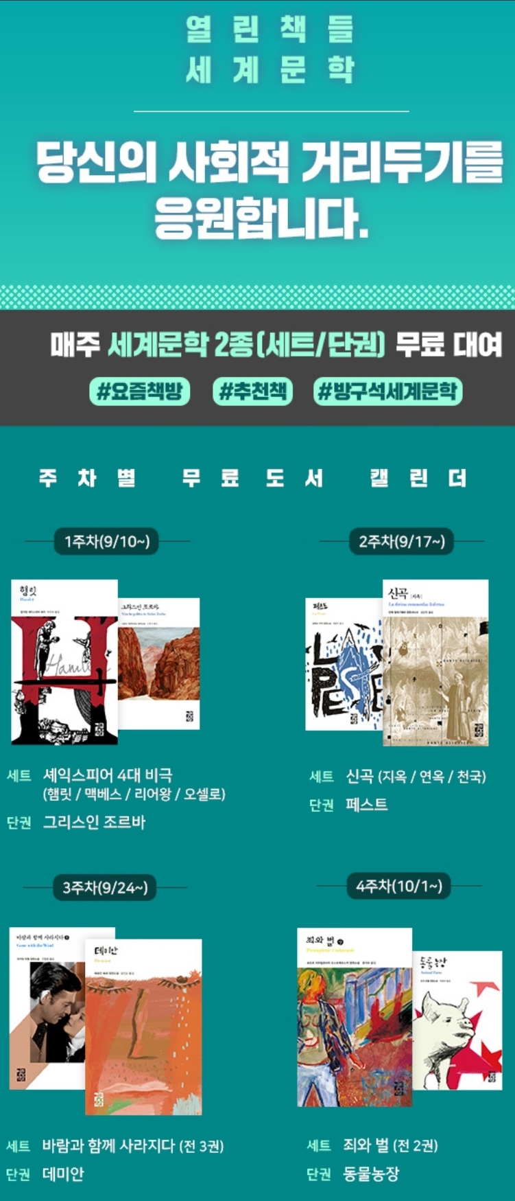 사회적 거리두기 응원캠페인 열린책들 세계문학 무료대여