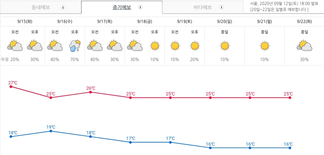 다음 주 서울지역 아침최저기온은 16도까지 내려감 본문
