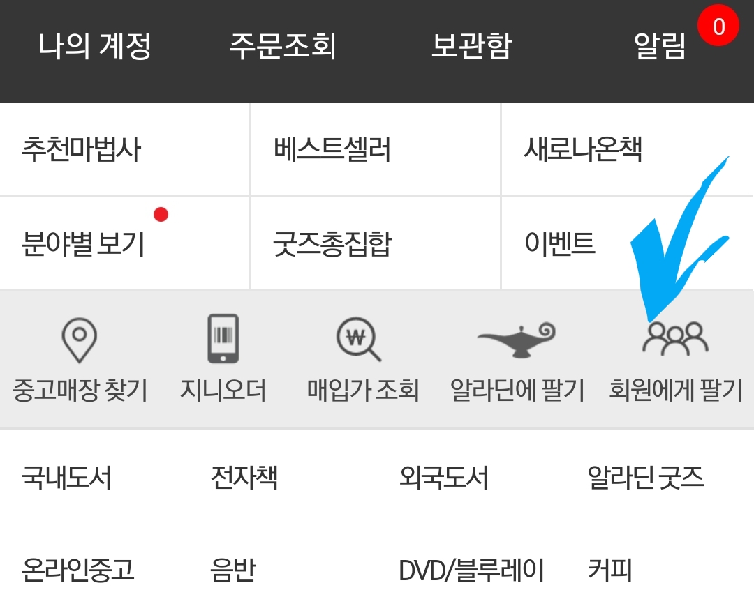 온라인서점 알라딘 앱의 헌책팔기 기능 본문