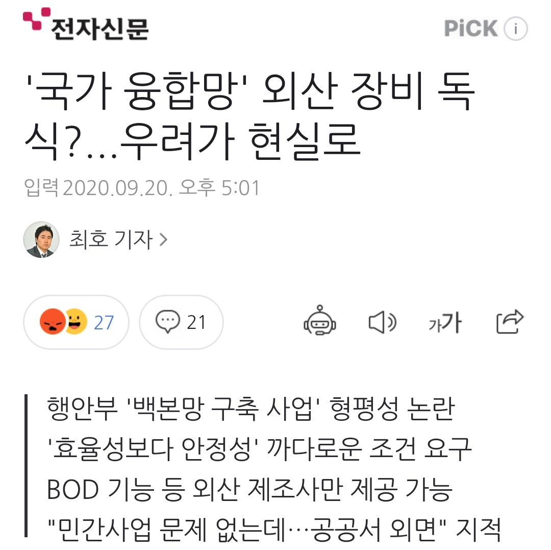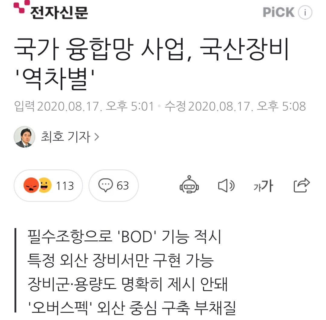 대기업들은 국내업체들 장비를 쓰는데, 공무원들은 외산달라고 사실상 조건부라는 뉴스. 언제까지나 그렇게 하면 IT소부장은 언제 키우냐는 말.