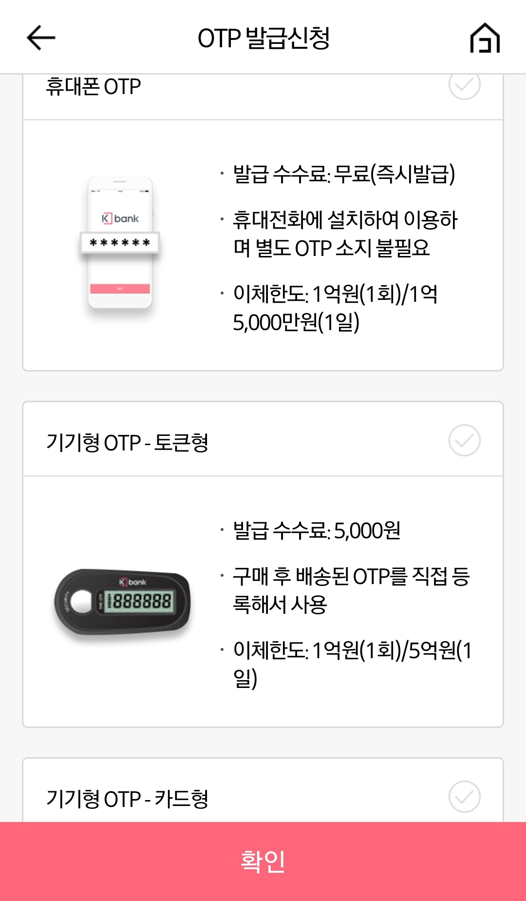 케이뱅크(K Bank)앱 OTP안내화면 본문