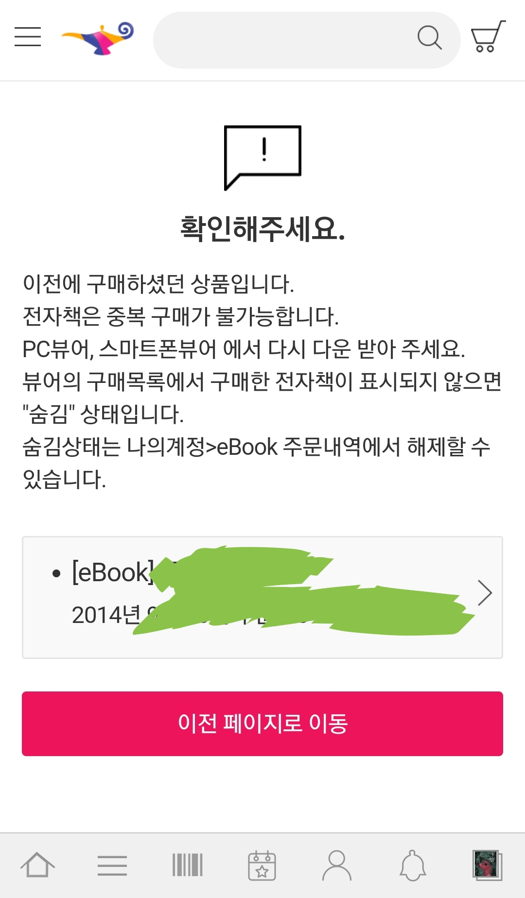 이 서점은 예전 경험해본(지금은 모름) 다른 모 서점과 달리, 대여이북도 일단은 체크해줍니다.