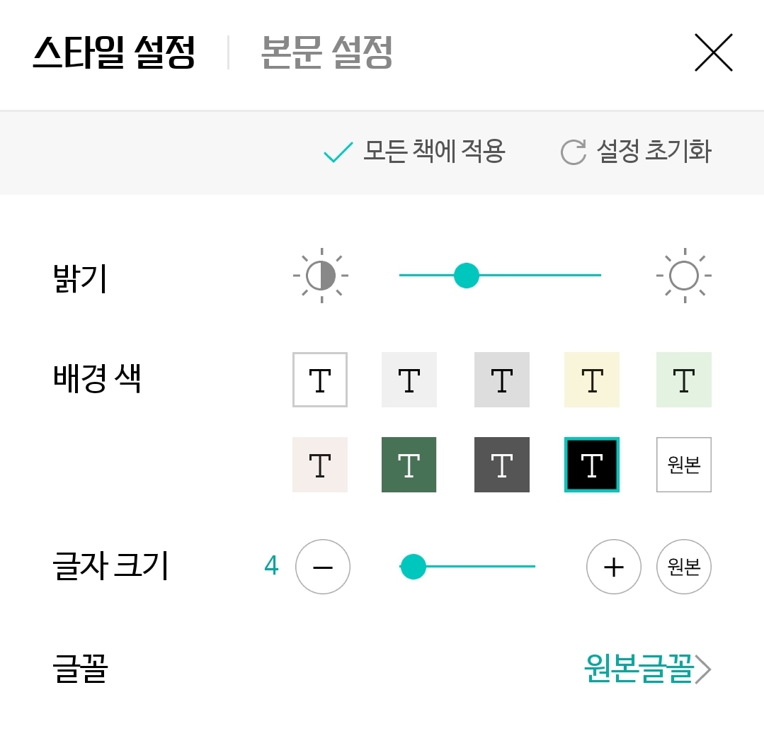 본문을 볼 때 여러 가지로 개인화하기 좋아졌음. 만화가 아닌 일반 책도 스크롤뷰가능, 전화기에 있는 글꼴 적용가능, 줄간/글꼴크기 등 설정이 편해짐, 지금 설정을 모든 책에 적용하기 편해짐. 야간모드 생김.