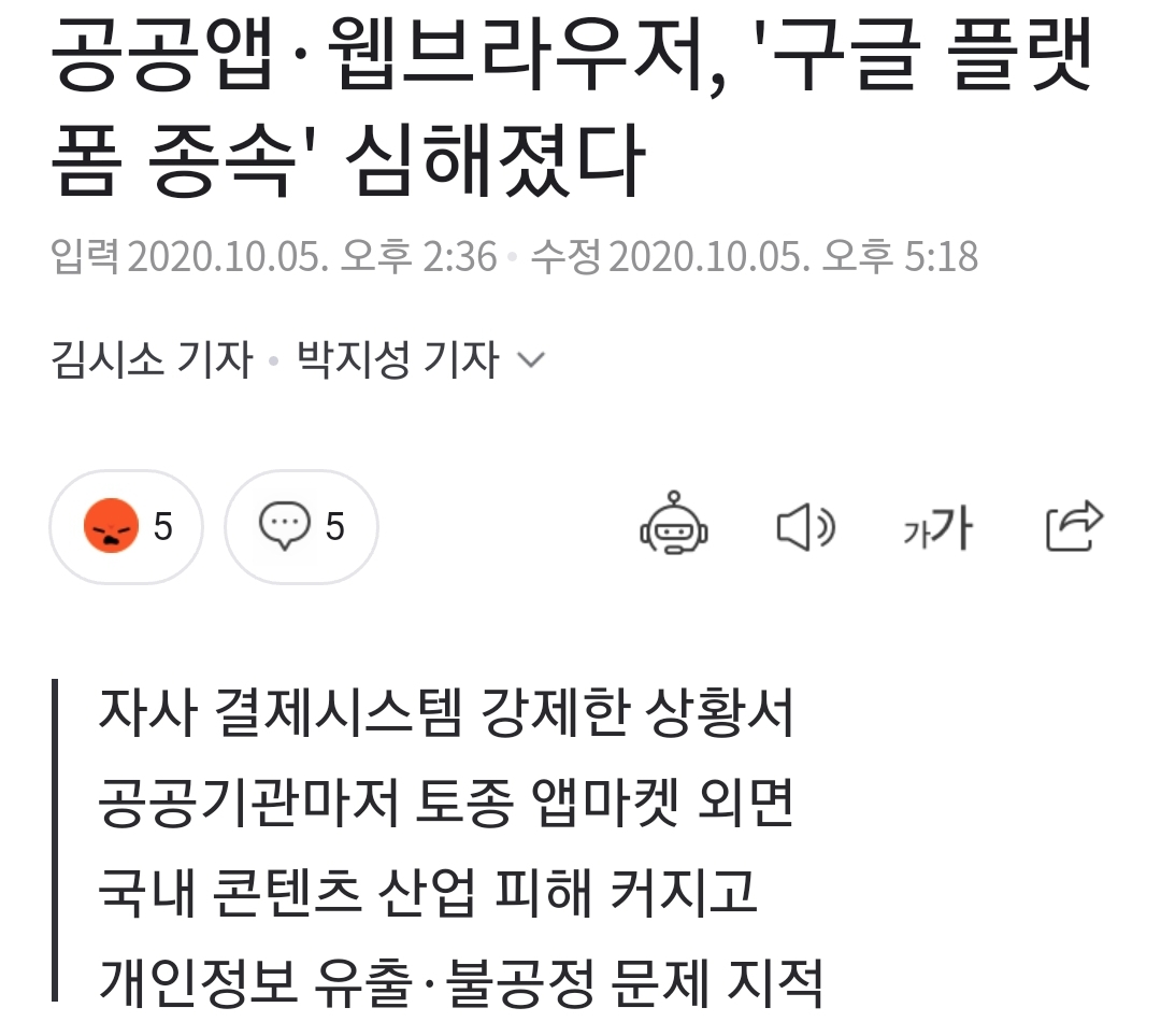 공공앱·웹브라우저, '구글 플랫폼 종속' 심해졌다