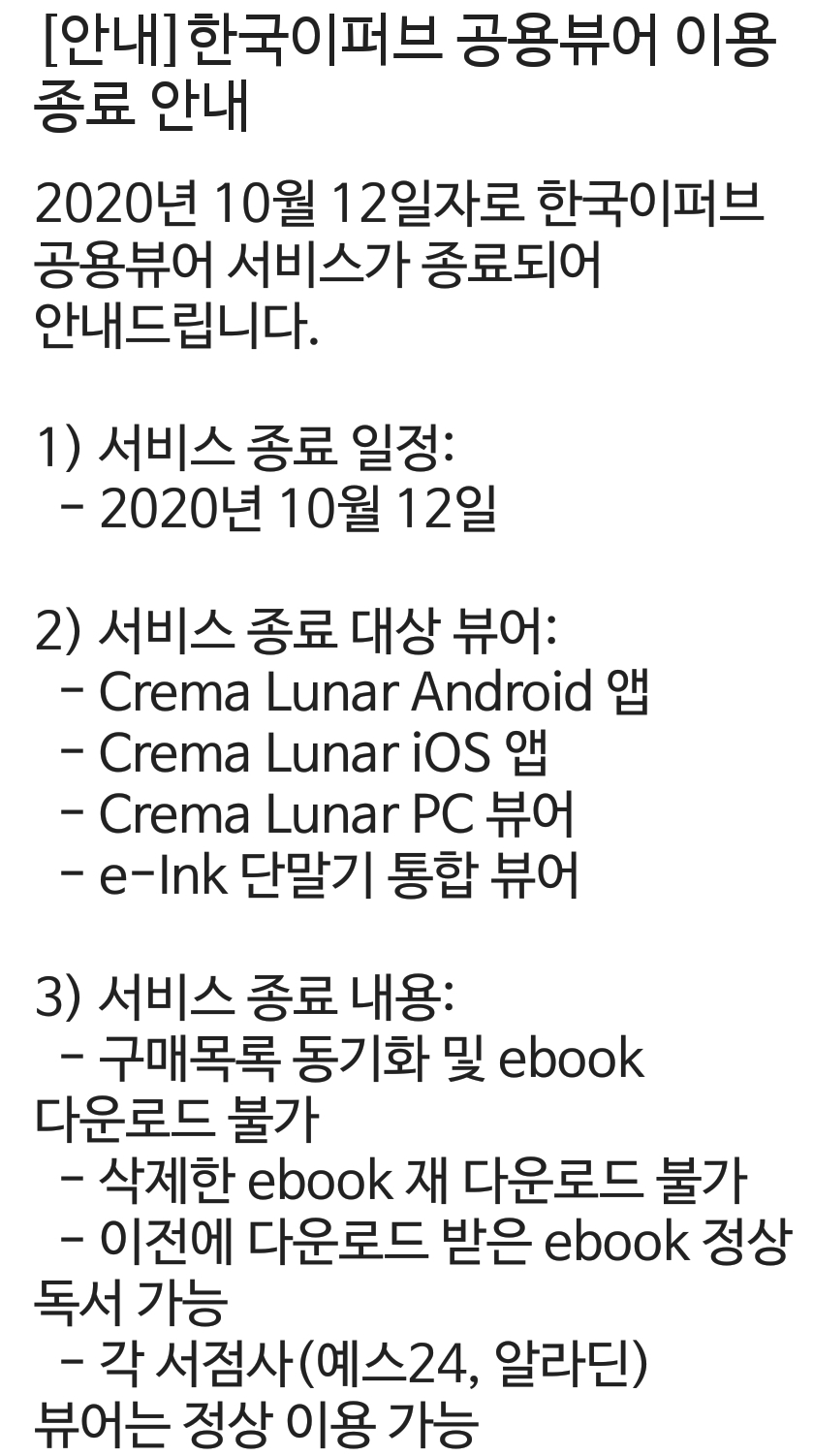 한국이퍼브 크레마앱/PC프로그램(크레마 루나)사용종료공지 본문