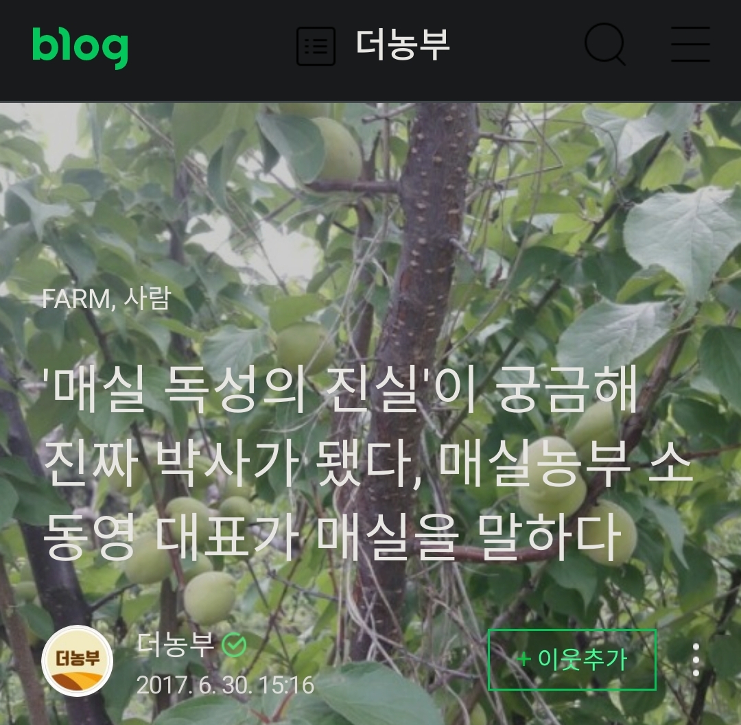 (링크) 매실청 독성, 매실(매화)나무 종류 등 본문