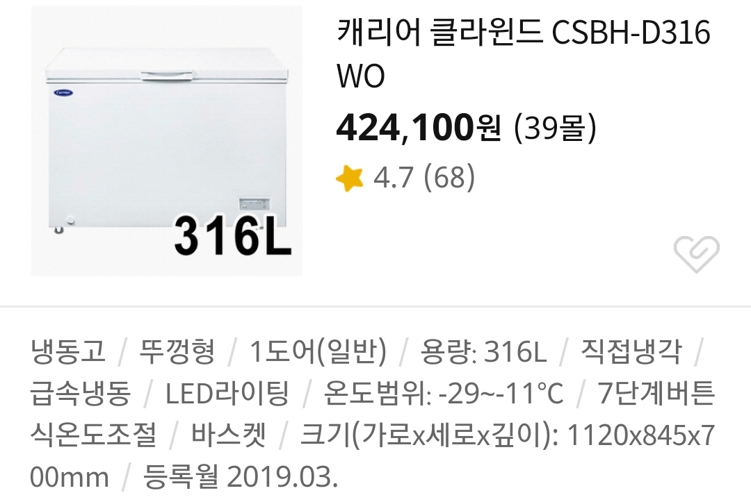 냉동고는 아직 소음부분이 검색필터가 없다. 오래된 김치냉장고는 정말 시끄럽고 요즘 양문형 냉장고는 조용하듯이, 냉동고도 그런 게 있을 것 같은데.. 특히 원룸산다면 잠자는 공간에 들여놓을 것이고, 보통 집이라도 냉장고가 2~3 대로 늘면 소리가 있어서 좋을 일이 없다.