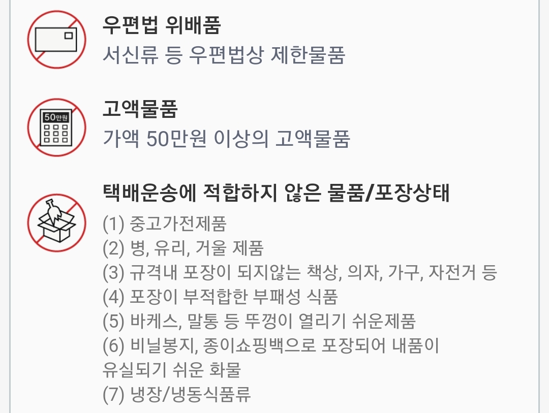 @ 농산물이나 전통식품종류.. 김치나 젓갈처럼 발효되어 터질 수 있거나 매우 무거운 액체있는 농산물/가공품을 친척에게 보내주려 한다면 우체국택배나 농협택배로. 우체국은 조금 더 주면 방문수거를 하고, 농협은 무조건 취급하는 농협지점(접수받는 지점이 따로 있다)에 방문해 발송. 접수받는 포장형태에 대해 전화든 방문하든 미리 물어볼 것.