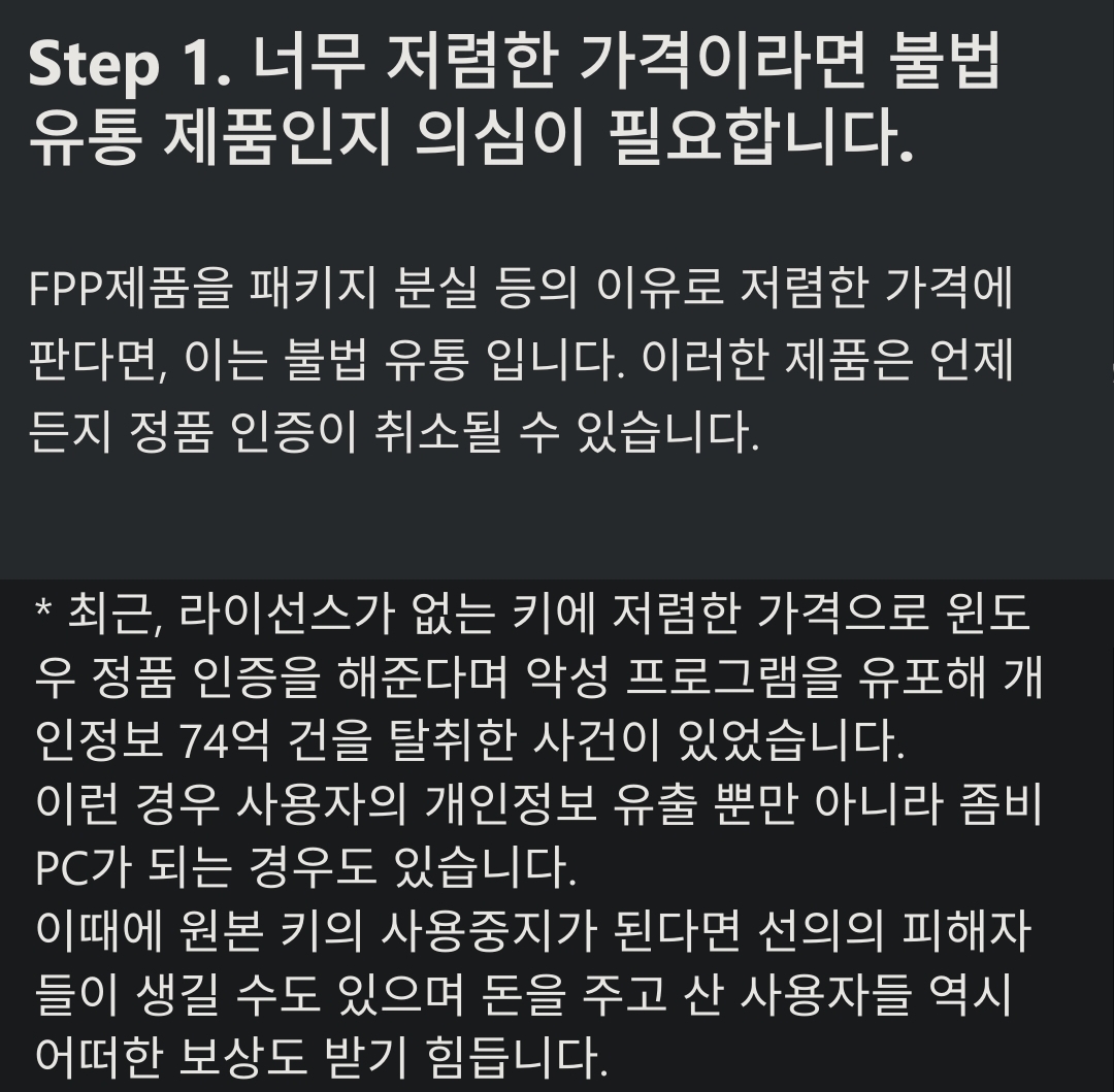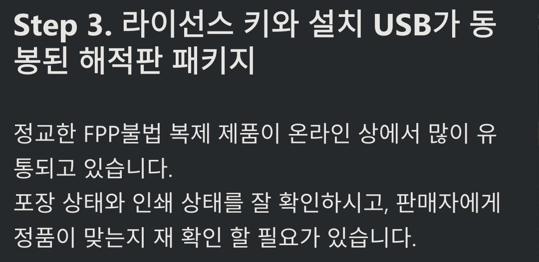 FPP 제품 Full Package Product를 말하며, 제품 키 + 설치 USB 가 동봉된 패키지 박스로 구성되어 있습니다. 리테일 매장 또는 온라인에서 구매 가능합니다.