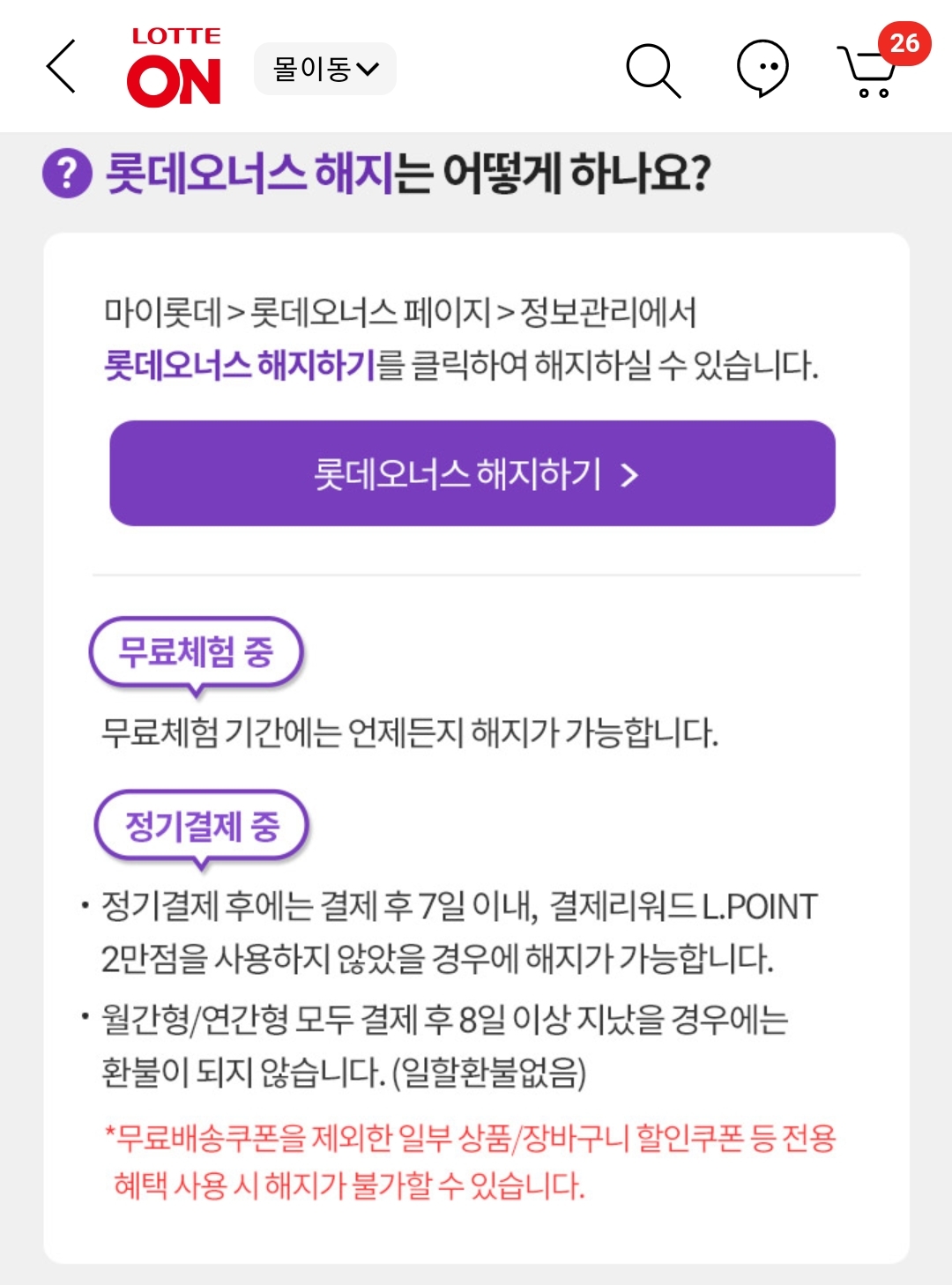 롯데닷컴 롯데오너스 무료체험 회원가입, 해지에 대해 본문