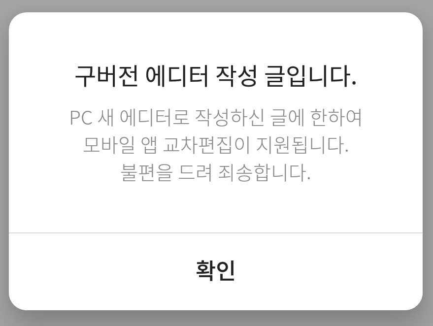 1. 텍스트편집모드가 없어 구버전 에디터로 작성한 글을 소스편집할 수 없음.