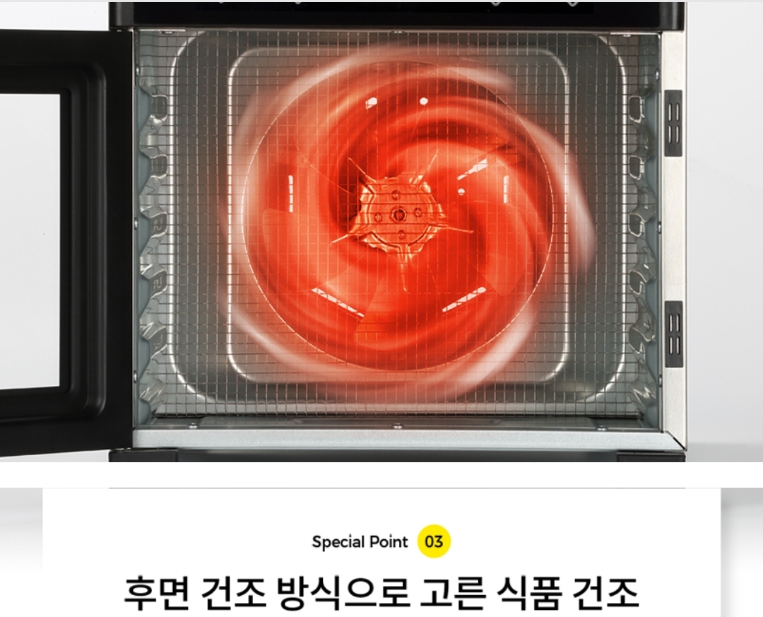 (그래서 나물류는 선풍기바람에 반건조한 다음 올리는 게 좋음. 과일류나 다른 것도 특히 양이 많으면 가급적, 맑고 대기중 습도가 낮은 날에 창문 다 열어놓고 선풍기바람으로 물기를 날려 어느 정도 꾸덕하게 말린 다음 건조기에 투입하는 게 좋습니다.)