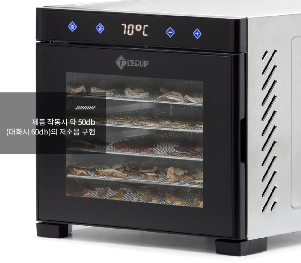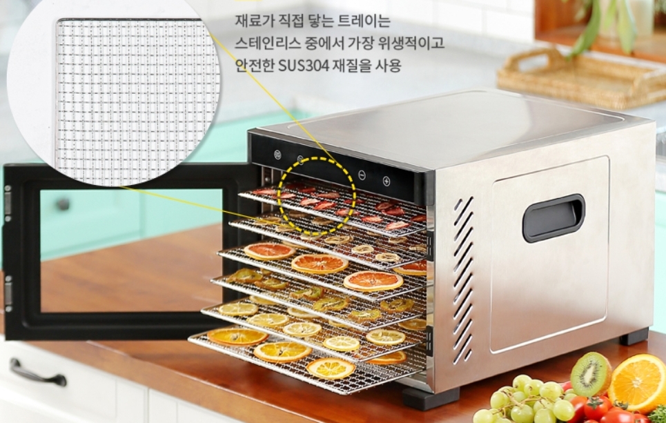 그런데 저 스텐기계는 농업용 건조기와 비슷하게 생겼죠. 그래서 열거한 플라스틱 트레이를 쌓는 방식의 단점을 다 해결. 대신 6단까지만 사용 가능.2