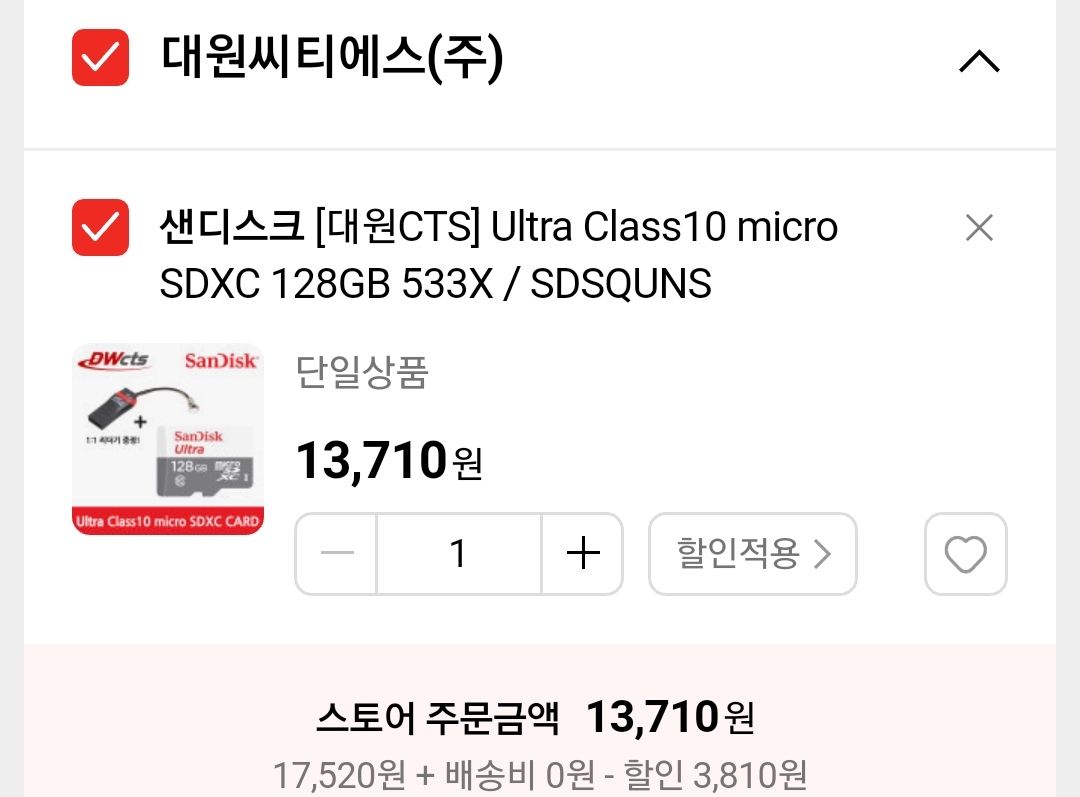 샌디스크 microsd 128GB, 13710원(무료배송) 본문