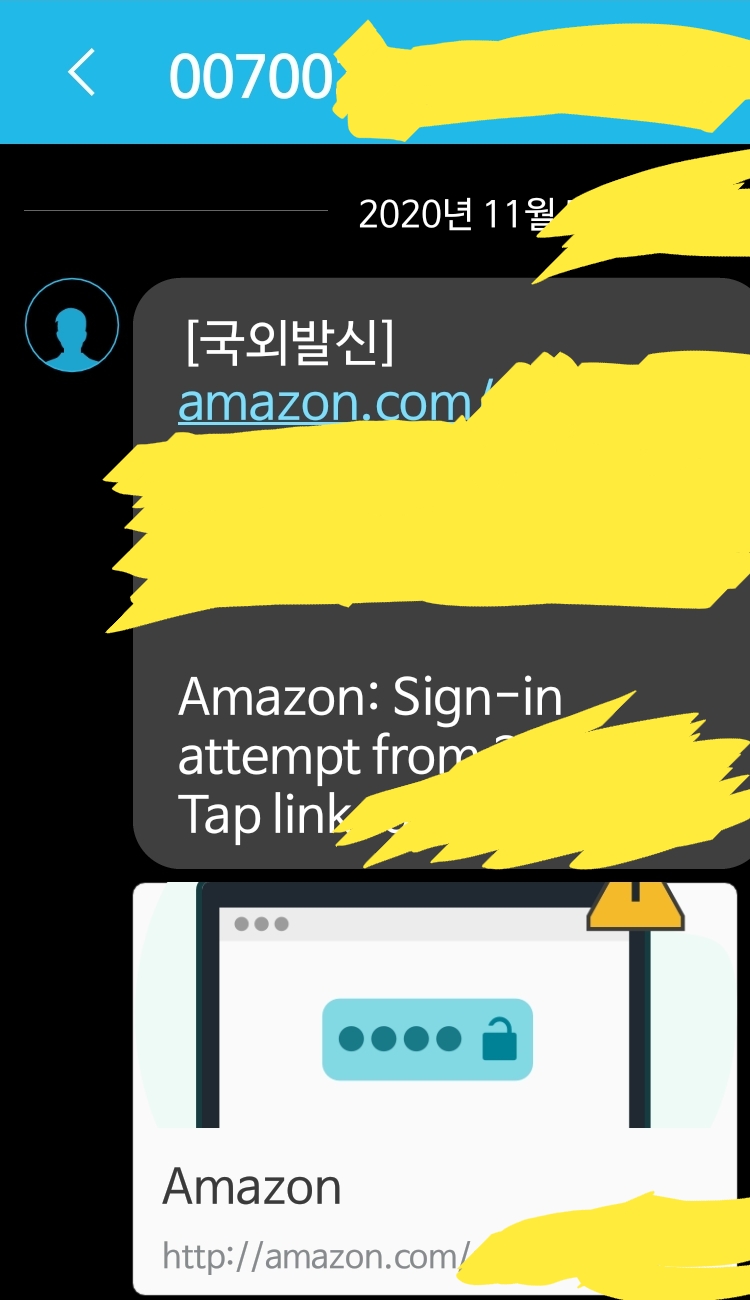 아마존(amazon.com) 본인확인문자는 00700발신번호 국제전화? 본문