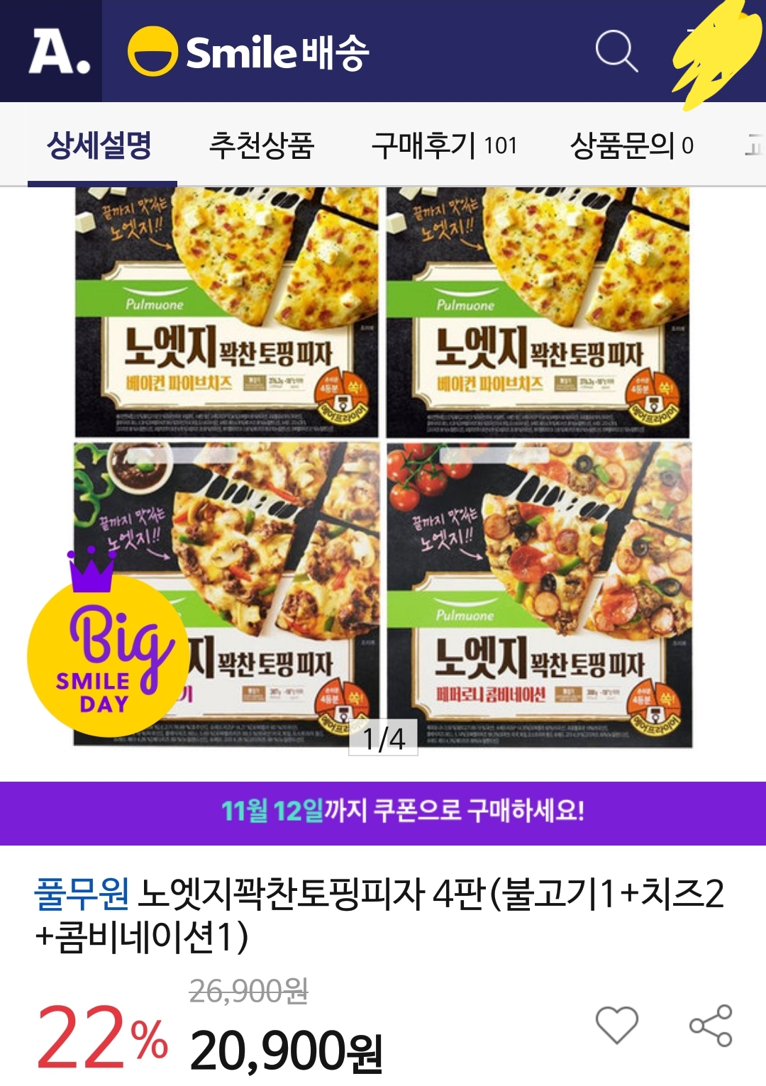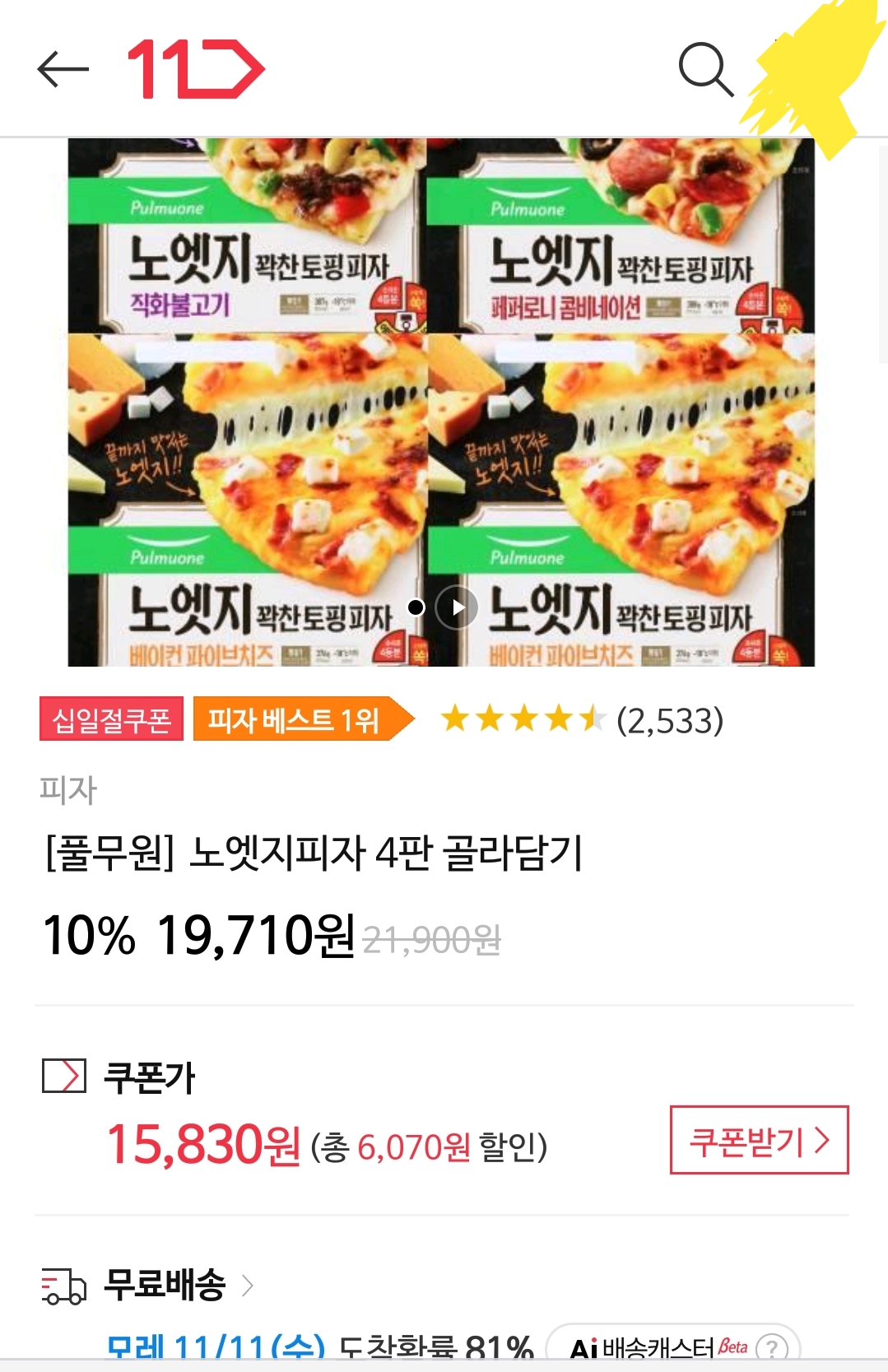 (옥션/지마켓/11번가) 풀무원 노엣지 피자 본문