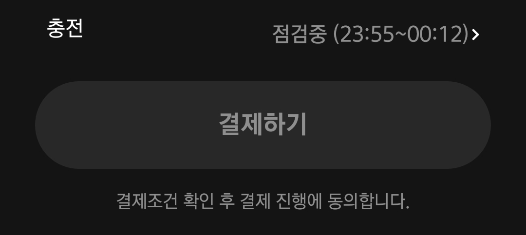결제는 자정보다 십여 분 전에 여유있게 마치는 게 좋습니다. 큰 몰도 가끔 그렇지만 처리물량이 몰리면 밀릴지 모르고 또, 아래와 같이 점검시간이 있습니다.