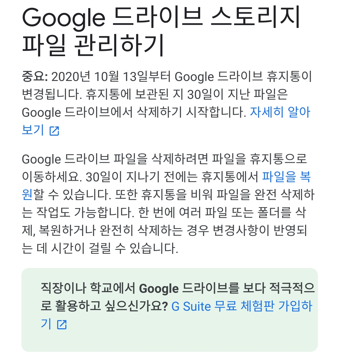 구글 문서도구, 2021년 6월부터 저장용량 차지/ 휴지통정책은 2020년 10월에 변경 본문