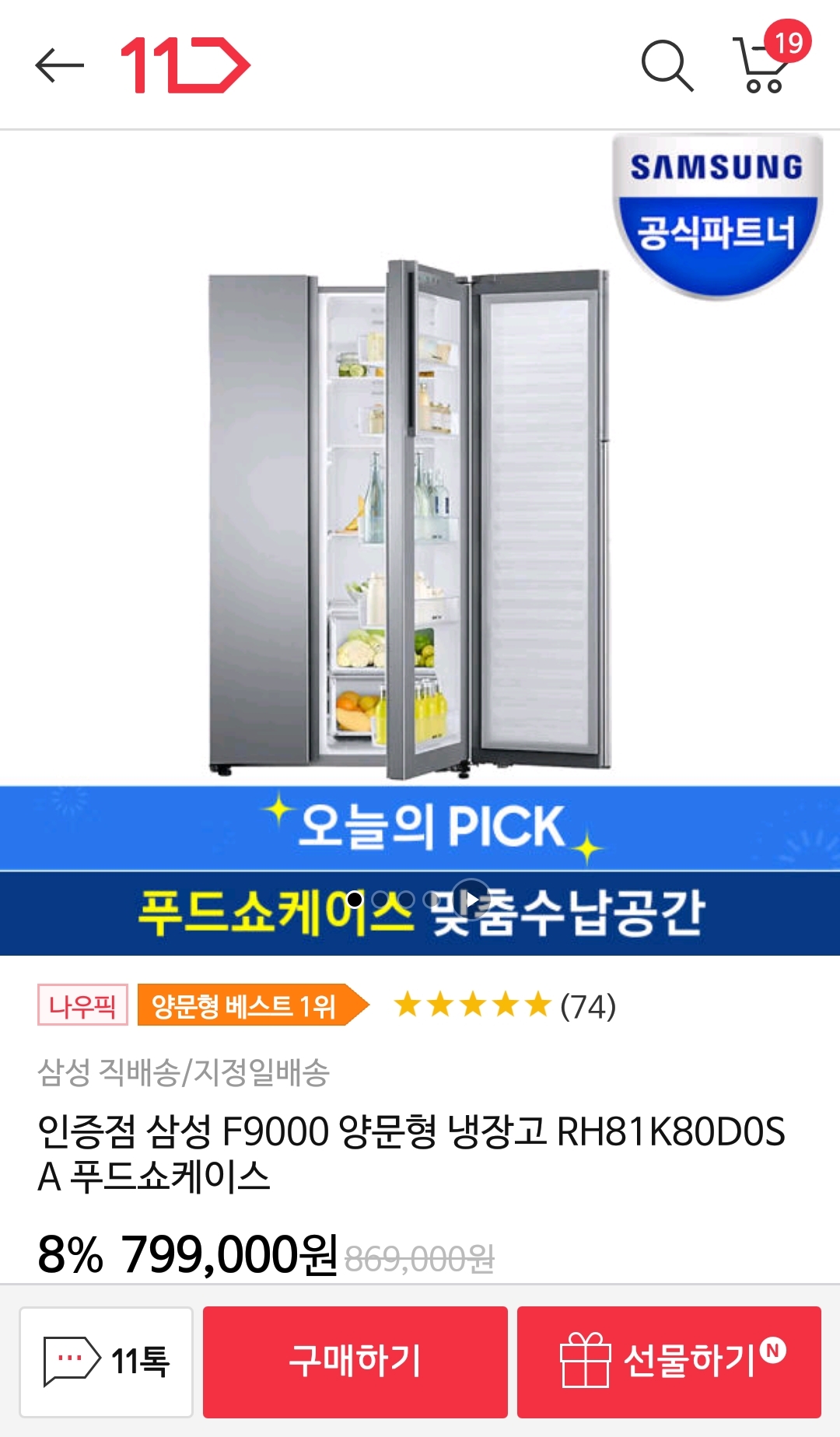 삼성전자 양문형냉장고 F9000 814리터. 80만원 본문