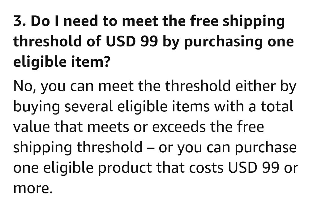 관세와 배송비를 합산하기 전에 99달러를 넘겨야 함.