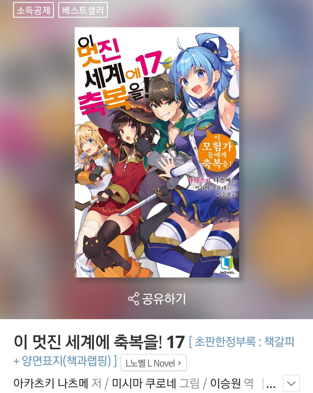 | 이 멋진 세계에 축복을! 17(완결, 라이트노벨) (0) | 2020.12.15 |