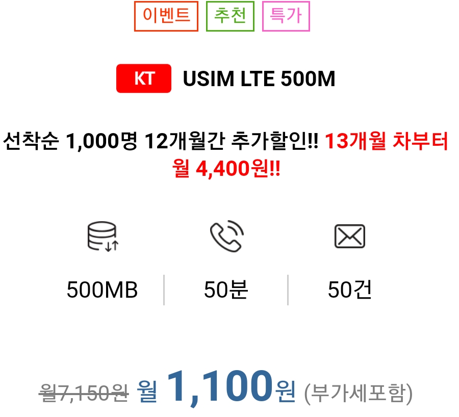 모 알뜰폰 1100원짜리 요금제(기간한정할인) 본문