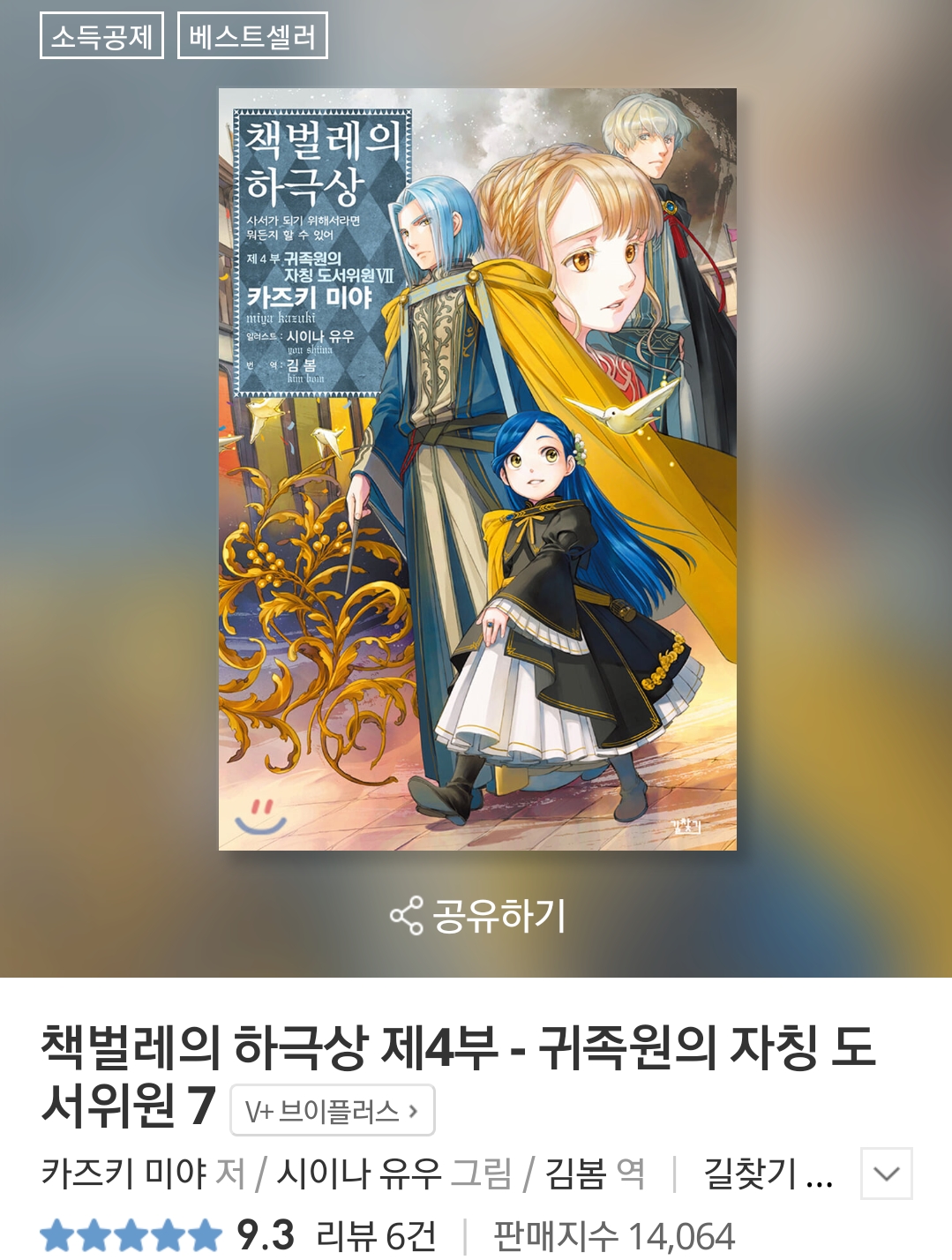 시리즈 누계 400만 부 돌파!대인기 비블리아 판타지 최신간!책벌레의 다과회에서 힐데브란트 왕자의 왕궁 도서관 관련 이야기를 들은 로제마인은 너무 기쁜 나머지 졸도했다. 그
