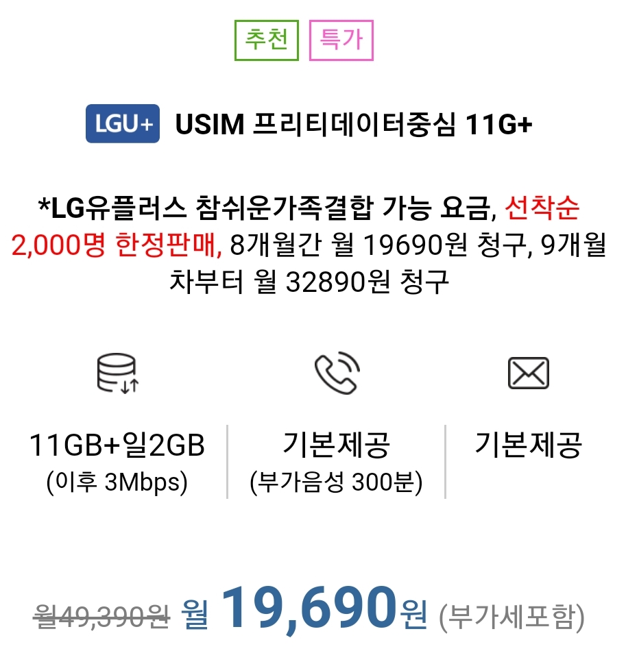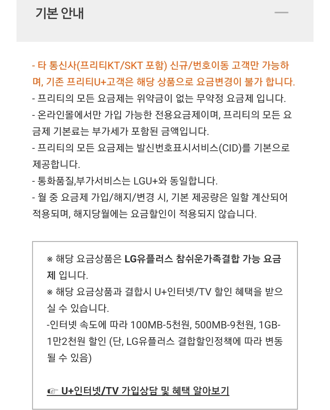 요금제는 딱히 링크는 하지 않았다. 검색하면 바로 나올 테니.