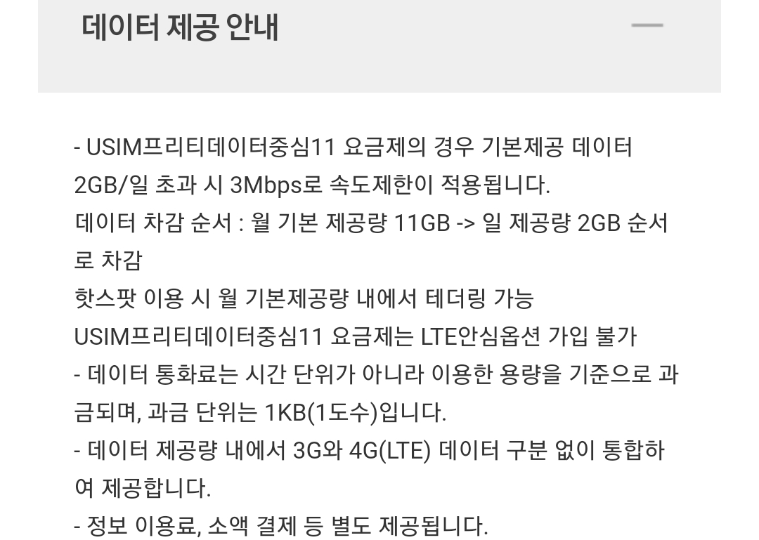 이런 식이다. 무제한과 QoS사 붙는 요금제는 다 이런 게 다소간 있으니까 특별하진 않다.