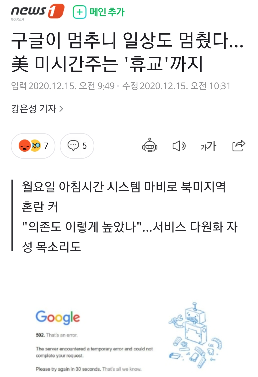 구글이 멈추니 일상도 멈췄다…美 미시간주는 '휴교'까지