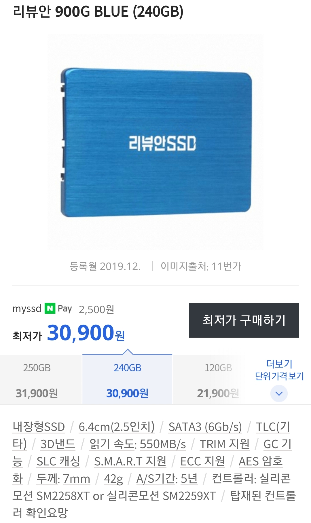 리뷰안 900G Blue SSD (240GB) 구입, 리뷰 본문