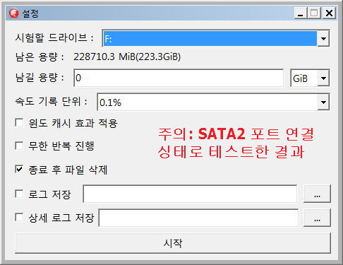 읽을 때 주의점: 초기속도와 최고치가 260MB/s로 나온 건 내가 이 디스크를 메인으로 쓸 게 아니라서, SATA2 포트에 물렸기 때문이다. SATA3포트에 달았다면 더 나왔을 것이다. 그러니 그 부분은 넘기고.. (만약 SATA3 포트에 연결해 스펙속도인 550MB/s를 뽑아냈다면, 저 벤치 결과에서 속도다운되는 구간이 조금 더 일찍 나왔을 지도 모른다. 어쩌면 상관없을 수도 있지만 해보지 않아서 모르겠다)