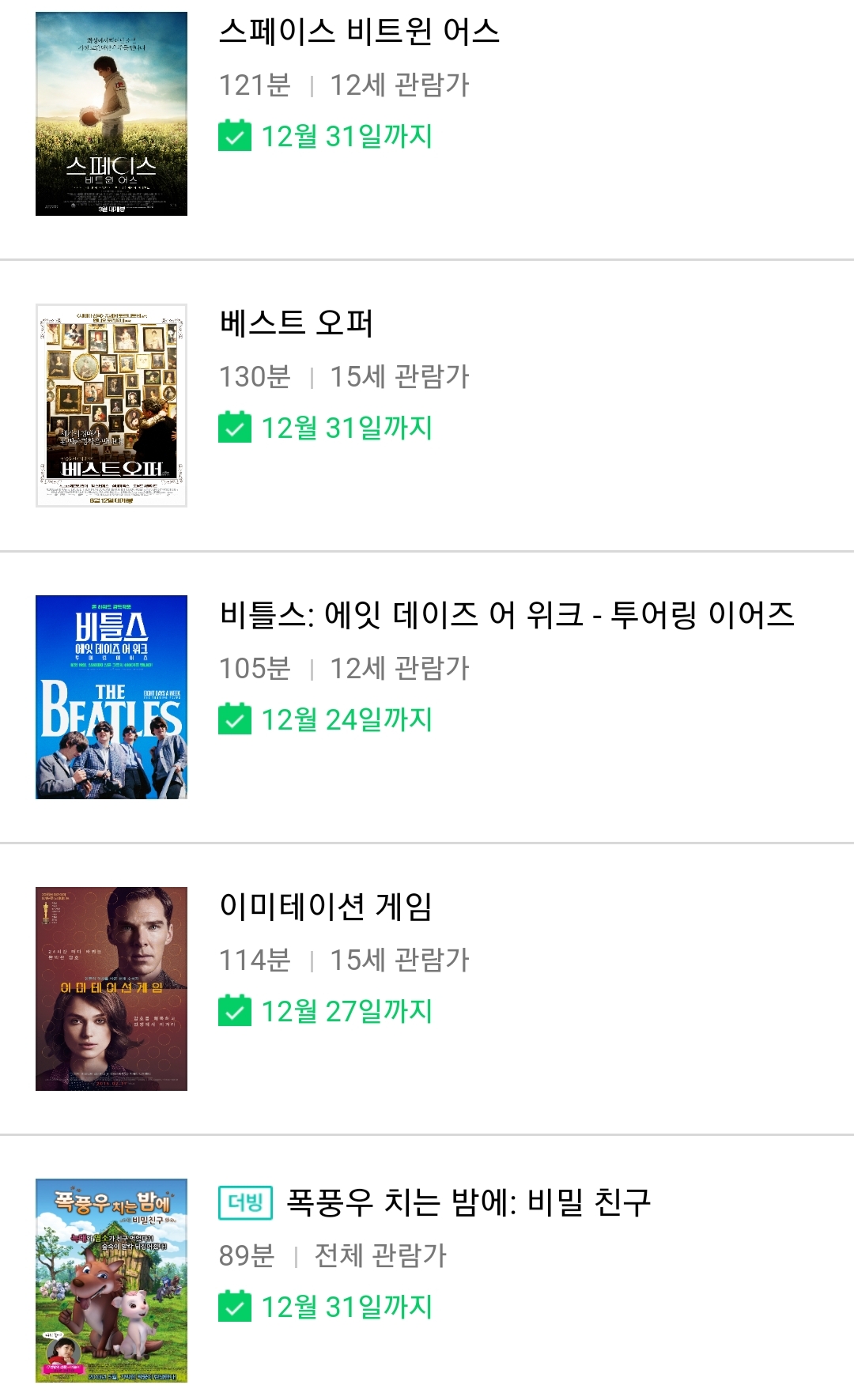 매주 금요일에 업뎃되는데요, 지난 주말에 깜빡해서 올립니다. 그 전 주에 올라온 게 금주 목요일까지는 하지만, 지난 금요일에 올라온 건 연말까지라서 하루라도 일찍 알면 여유가 있겠죠.