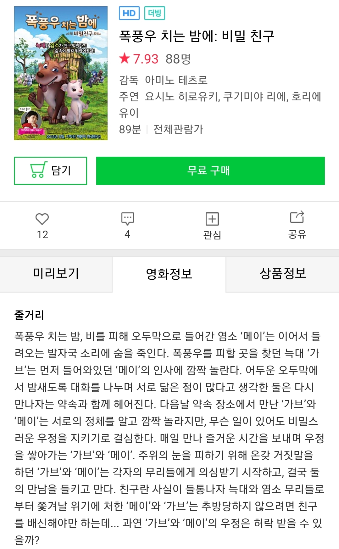 ㅡ 구매영화는 공개된 기간동안 0원 대여결제하면 지정된 기간동안 다운받아두면 언제나 볼 수 있습니다(DRM 없음)