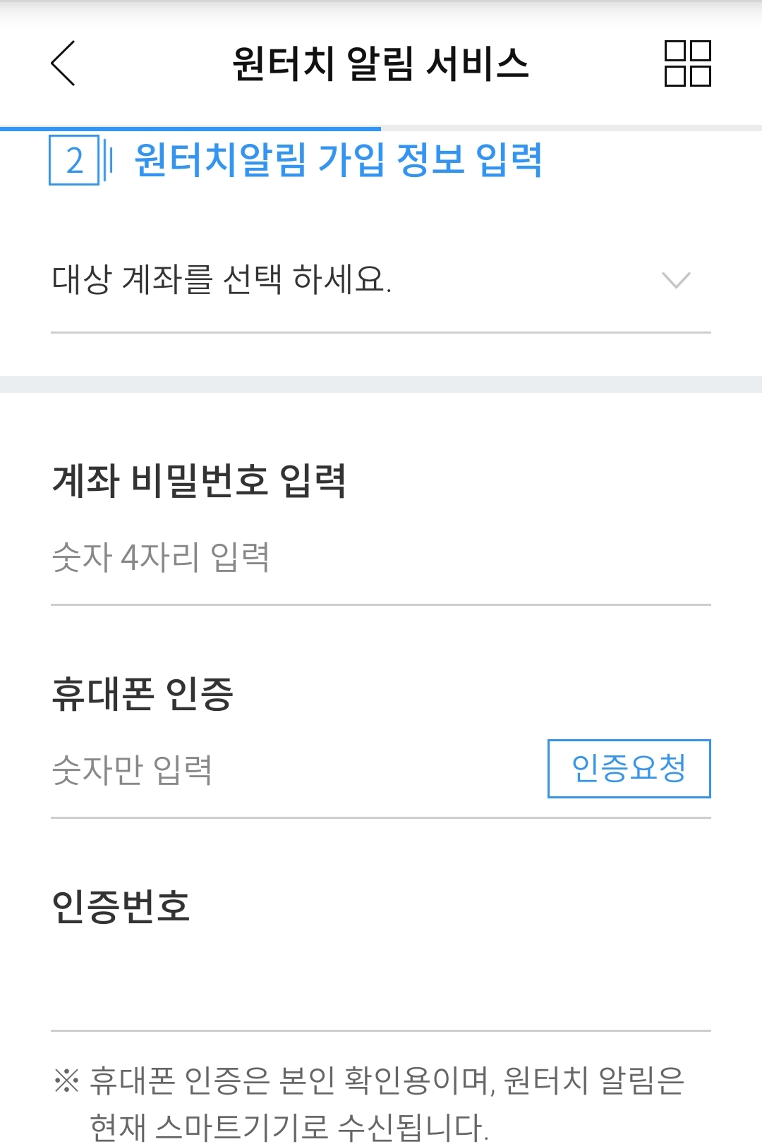 "원터치알림서비스" 선택.
