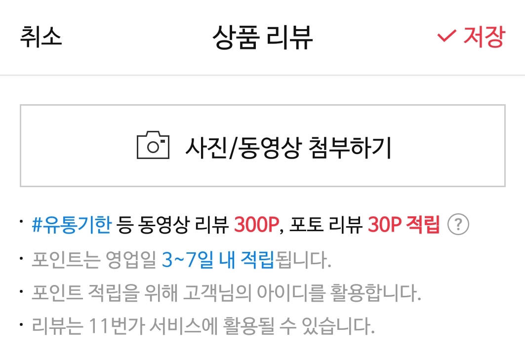 제품 구매확정 -> 리뷰작성하다 동영상이나 사진을 빼고 후기를 등록하게 만들어놨더군요.