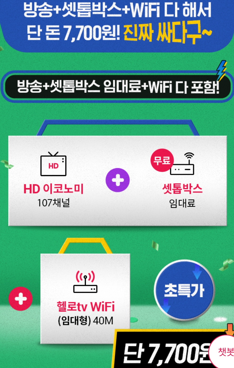방송+WiFi 단 7,700원! 진짜 싸다구~
