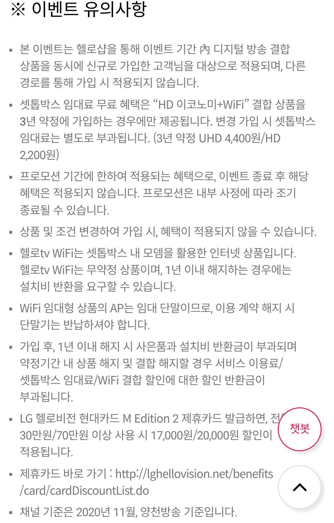 LG헬로비전, 케이블방송+WiFi = 7,700원 상품에 대해 메모 본문