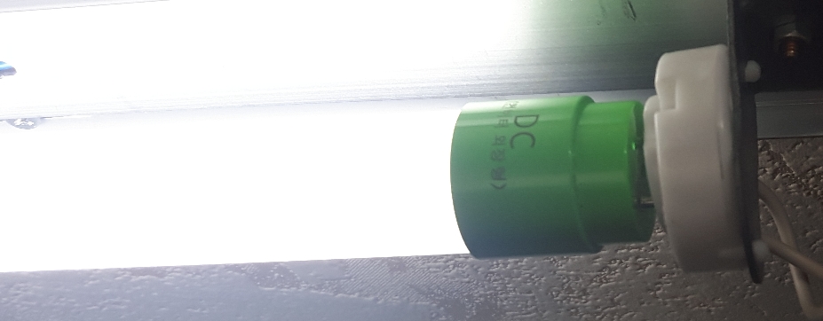 ※ 직관형 엘이디 형광등은 발광부위가 긴 띠모양 LED 스트립입니다. 그게 두꺼운 우유빛 확산판 안에 들어있죠. 불켜놓고 딱 보면 스트립 뒷면은 윤곽이 보입니다. 하지만 확산판이 두껍기 때문에 그렇게 티는 안 나고, 등기구의 확산판까지 거치고 나면 눈치챌 사람 거의 없을 듯. 사진 올립니다.