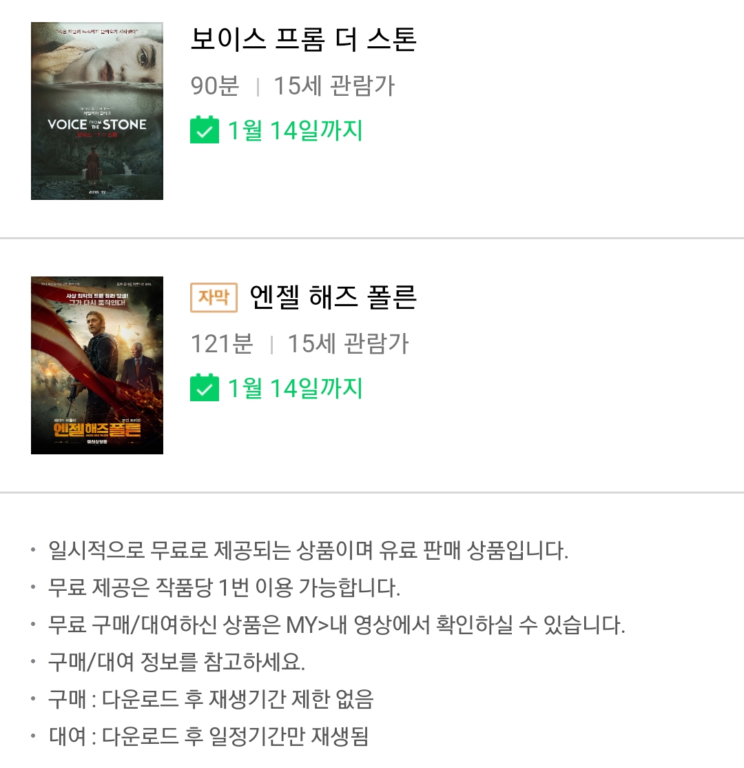 ※ 구매영화는 기간내 컴퓨터에 다운받으면 언제든지 재생해 볼 수 있습니다.