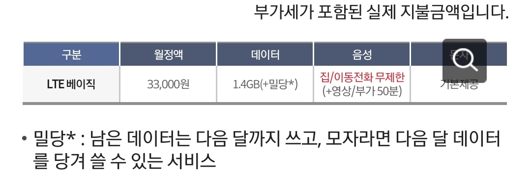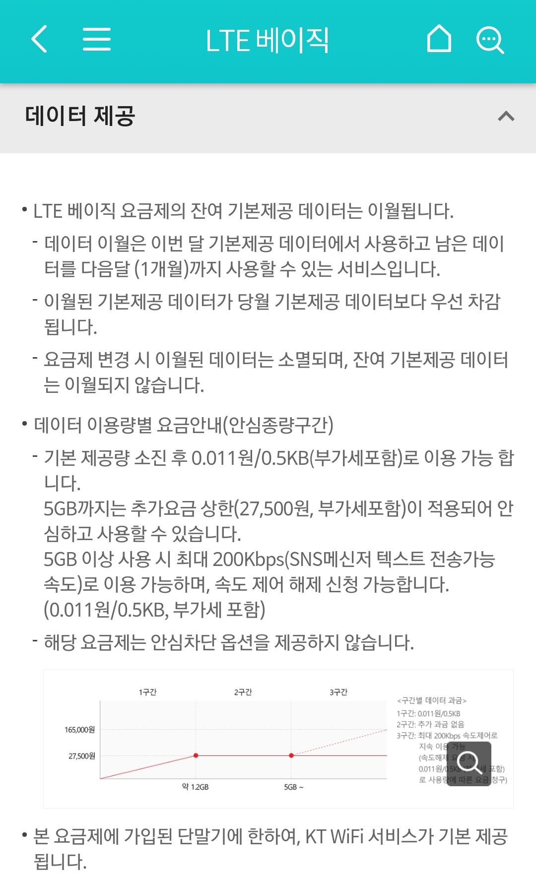 기본인 LTE베이직 요금제 소개