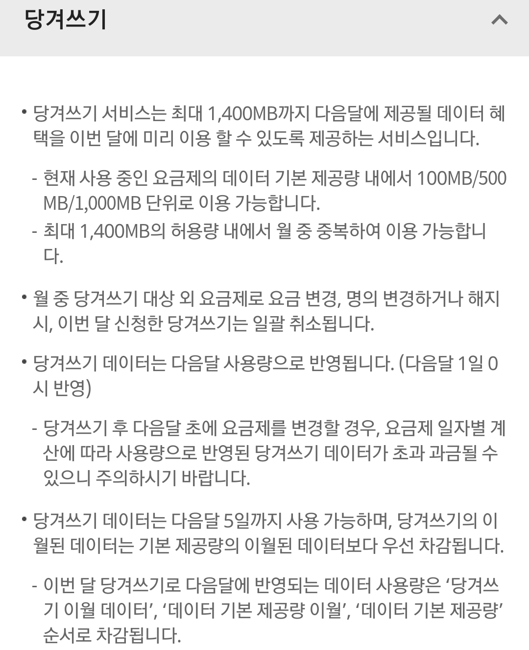 (데이터가 1.4기가인지 1.5기가인지는 앱에서는 표시가 다르게 되어 있는데 PC웹과 상담원통해 확인할 필요가 있습니다. 1.4기가가 맞는 듯.)