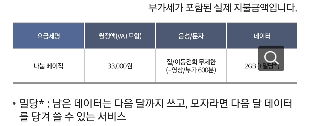 만약 장애인 등 복지할인대상이라면 나눔 베이직 요금제가 있습니다.